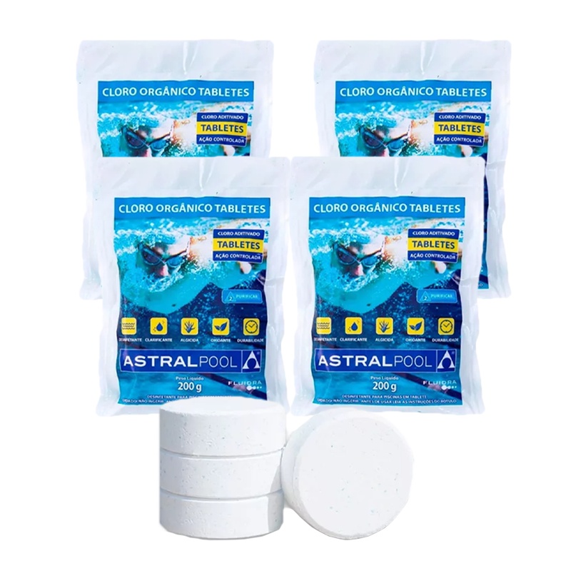 Kit 4 Pastilha De Cloro Organico 5 Em 1 Desinfetante Clarificante Algicida Oxidante Duravel 200g Para Limpeza De Piscina