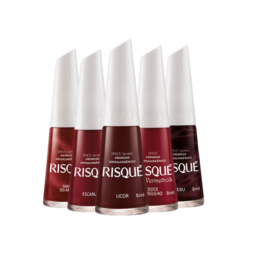 Kit 5 Esmaltes Vinhos Que Amamos Risque (Maçã Do Amor, Escarlate, Licor ,Doce Orgulho ,Rebu)