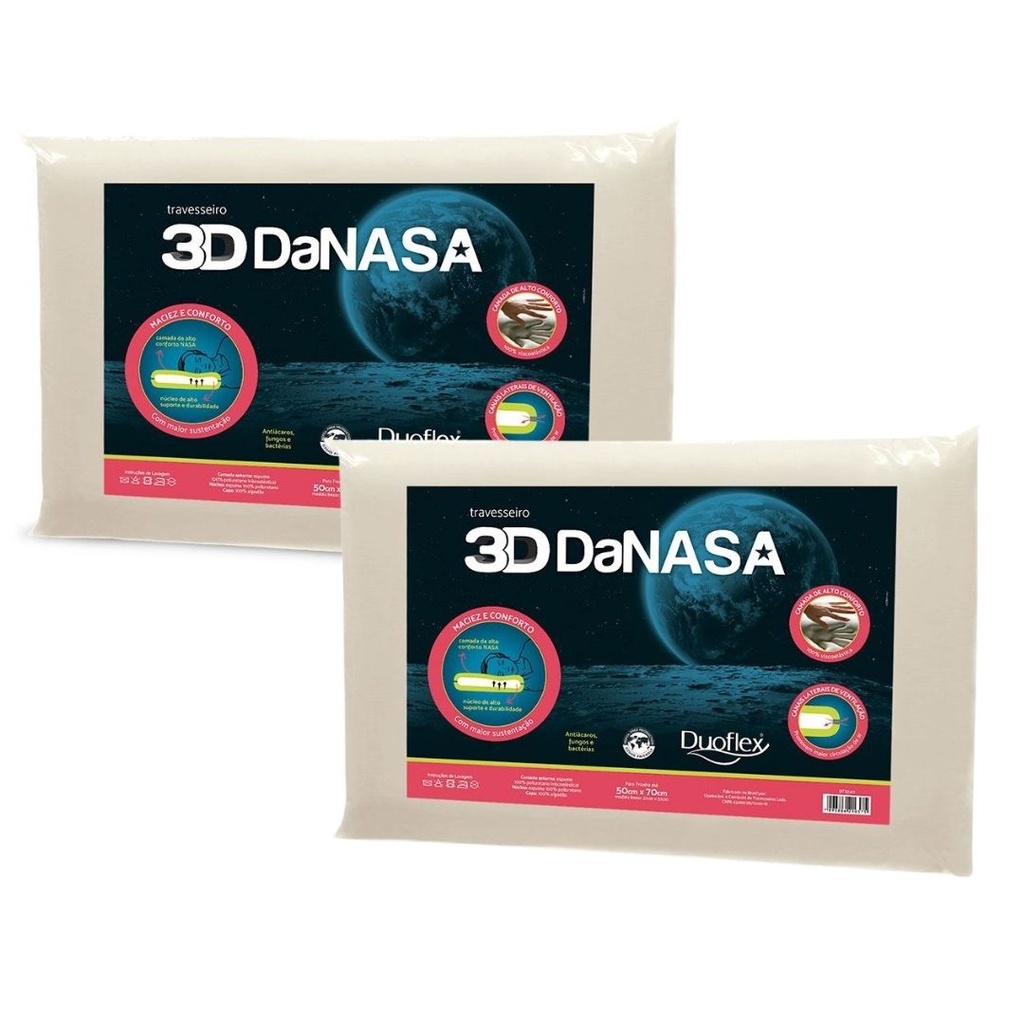 Kit Com 2 Travesseiro Viscoelástico 3D Da Nasa Camada De Alto Conforto 37x57cm Duoflex DT3240