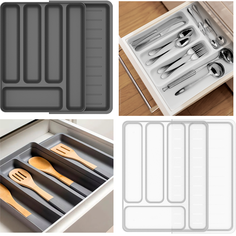 Organizador Porta Talheres Extensível Com Kit 4 Divisórias de Gavetas Utensílios Cozinha Multiuso Ou