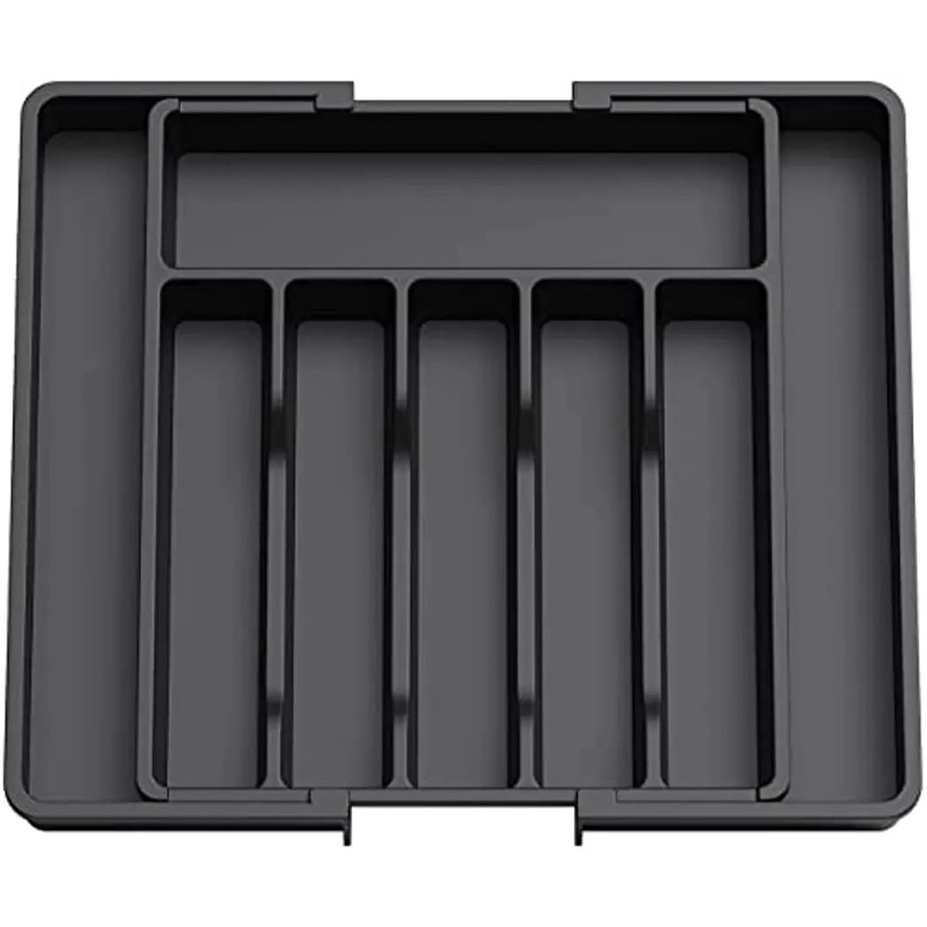 Organizador De Gavetas Para Talheres Prataria , Bandeja Expansível Utensil Cozinha , Faqueiro Ajustável E Porta Preto