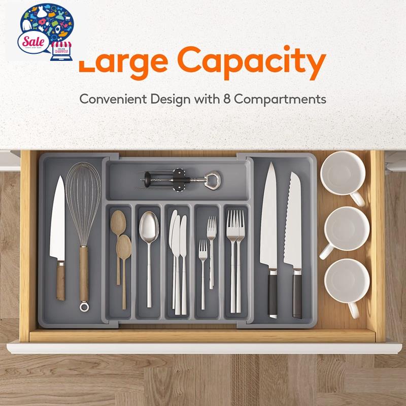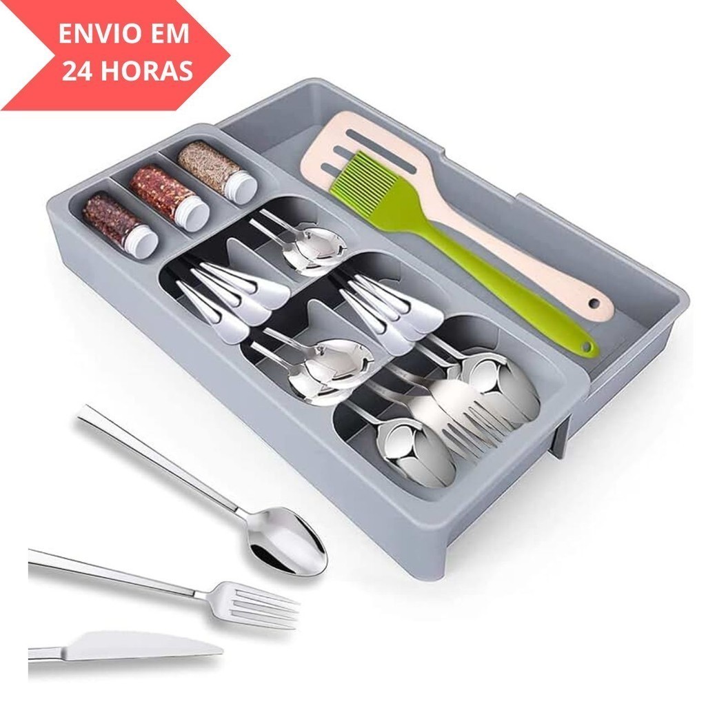 Organizador Extensível de Gavetas Porta Talheres Utensílios Cozinha Bandeja com Extensor Grande OU