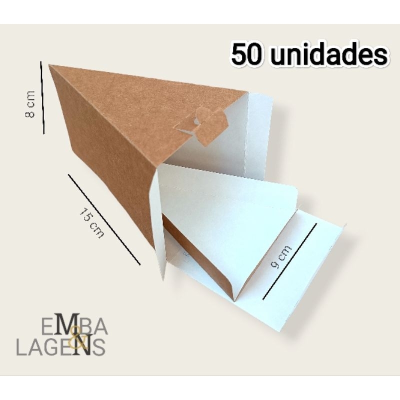 Kit Embalagem para Fatia para Bolo / Torta / Temaki em branco 50 Unidades
