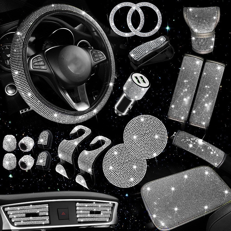 Conjunto De 30 Pacotes De Acessórios Para Carros Bling , Tampa Do Volante Women Universal Fit 15 Polegadas , Guarnições De Saída De Ventilação Carro Braço Tampas Cinto De Segurança Carregador USB
