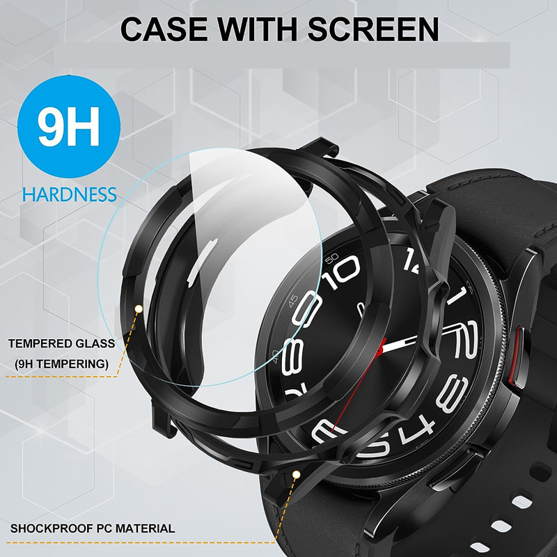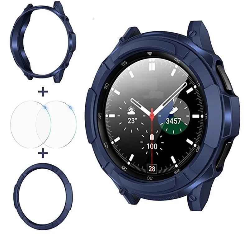 Capa 3 Em 1 Para Samsung Galaxy Watch 6 Classic 43mm 47mm TPU Resistente + 2 Protetores De Tela De Vidro Temperado + De