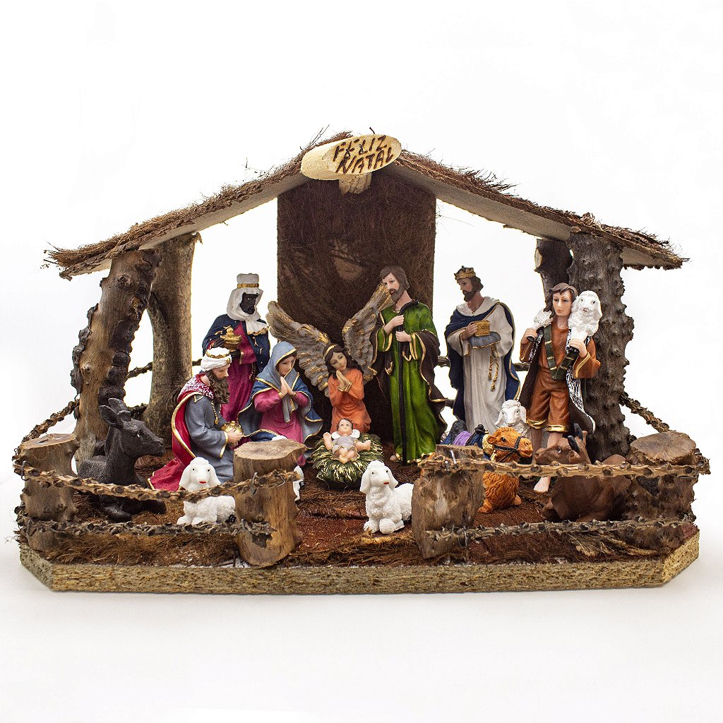 Kit Presépio Resina 14 Peças 15 cm com Casinha N3