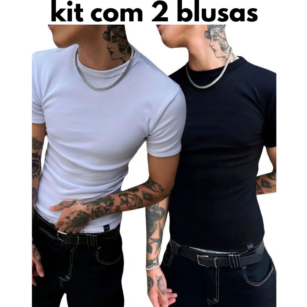 Kit 2 Camiseta Masculina Modelo Americano Canelada Básica