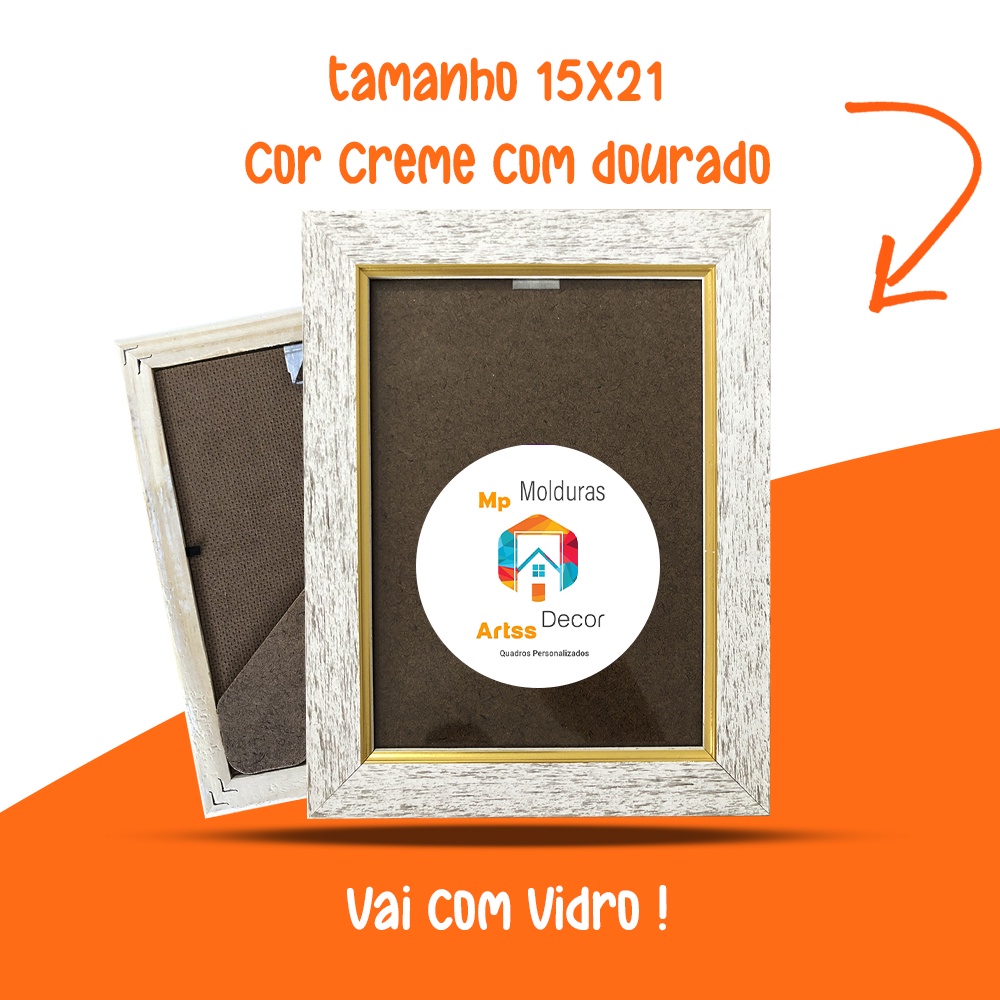 Kit Porta Retrato 15x21 C/Vidro Creme c/ Dourado 5 Unidades