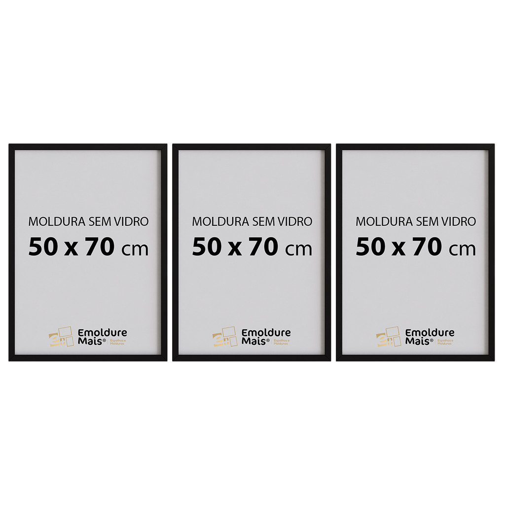 Trio Kit 3 Molduras 50x70 cm Sem Vidro para Quadro Decorativo Foto Retrato Quebra Cabeça Decoração Sala Quarto Escritório…