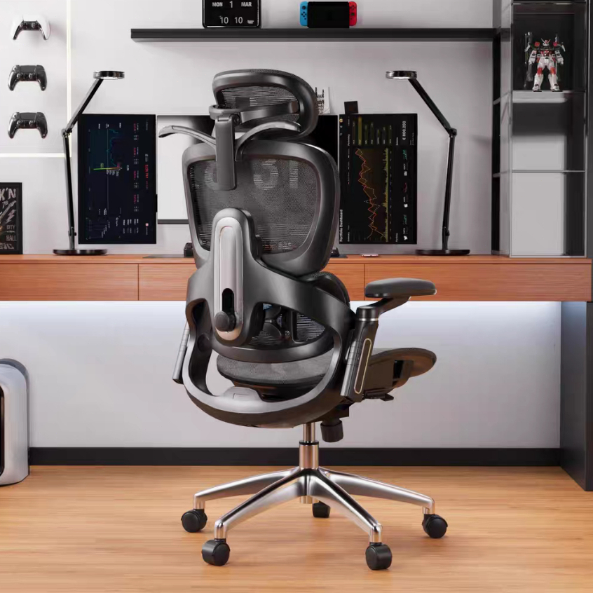 Cadeira de Escritório Ergonômica Giratória com Encosto Mesh, Apoio Lombar e Cabeceira Ajustável