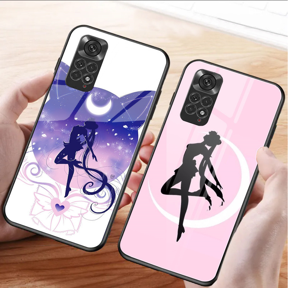 Capa de telefone de vidro temperado para Xiaomi Redmi Note 8 9 10 4G 11 Pro Plus 12 5G 13 Sailor Moon