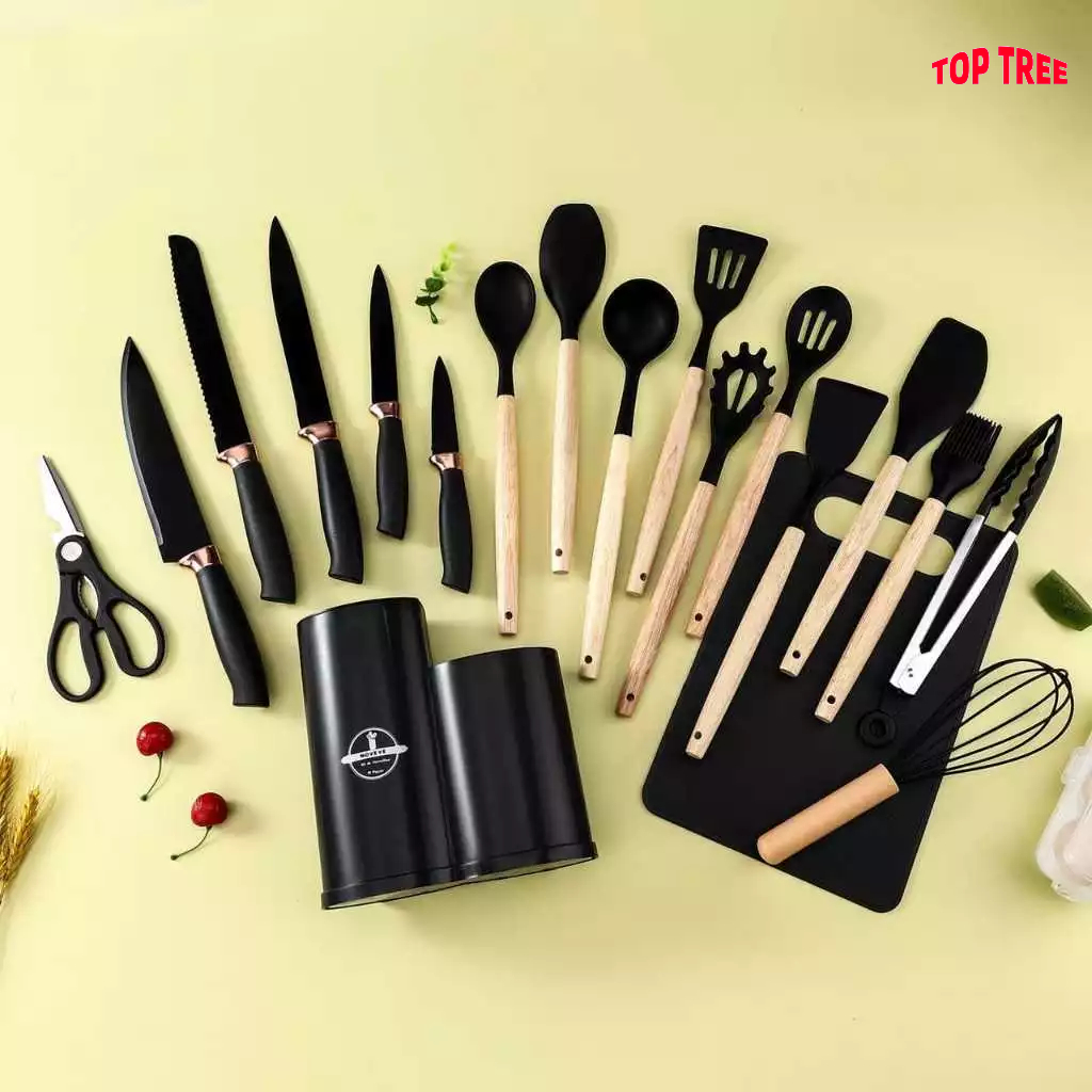 Kit 19 Peças NOVO Completo Jogo Utensílios de Cozinha Luxo Com Tábua em Silicone Espátula Faca Tesoura 2000GR TOPTREE