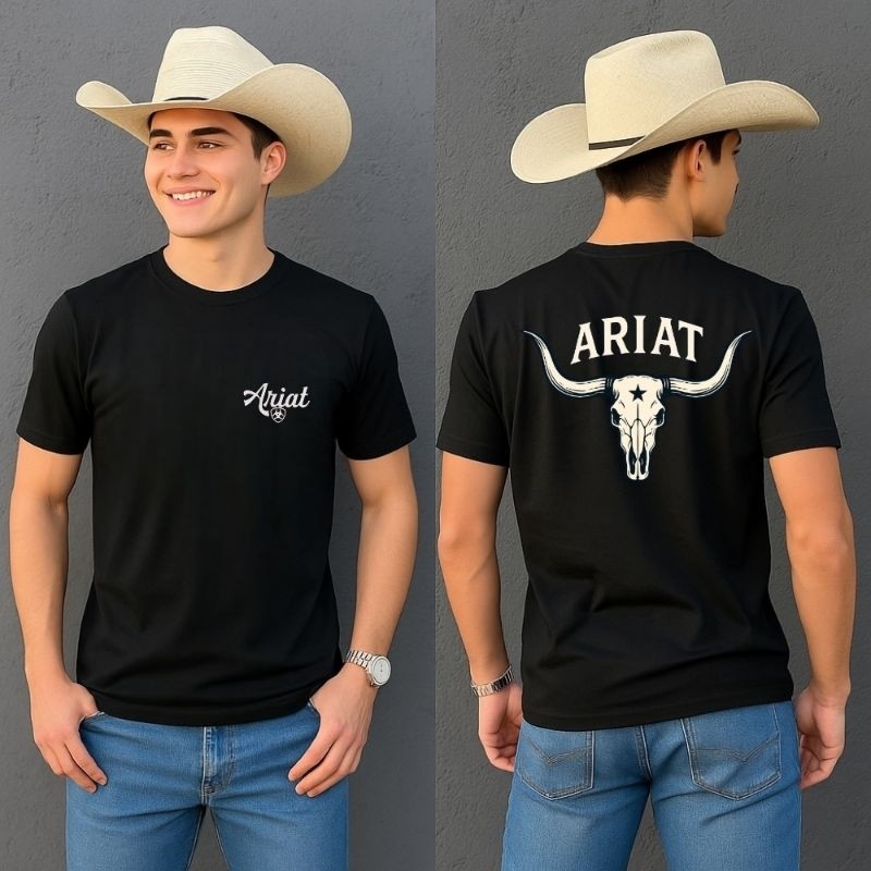 Camiseta Masculina Country Algodão Camisa Ariat Unissex Estampada Texas Rodeio