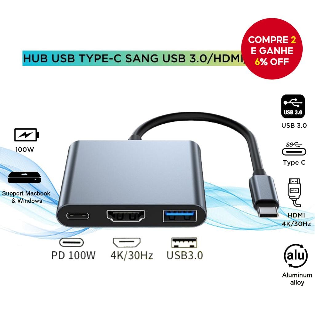 Novo Hub USB-C com HDMI e Adaptador USB 3.0 Tipo C para MacBook Pro Air 4K Portátil