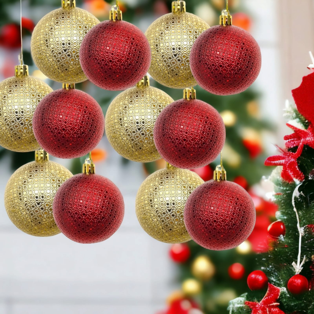 Kit bolas de natal vermelhas e douradas tamanho grande 6 cm decoração natalina