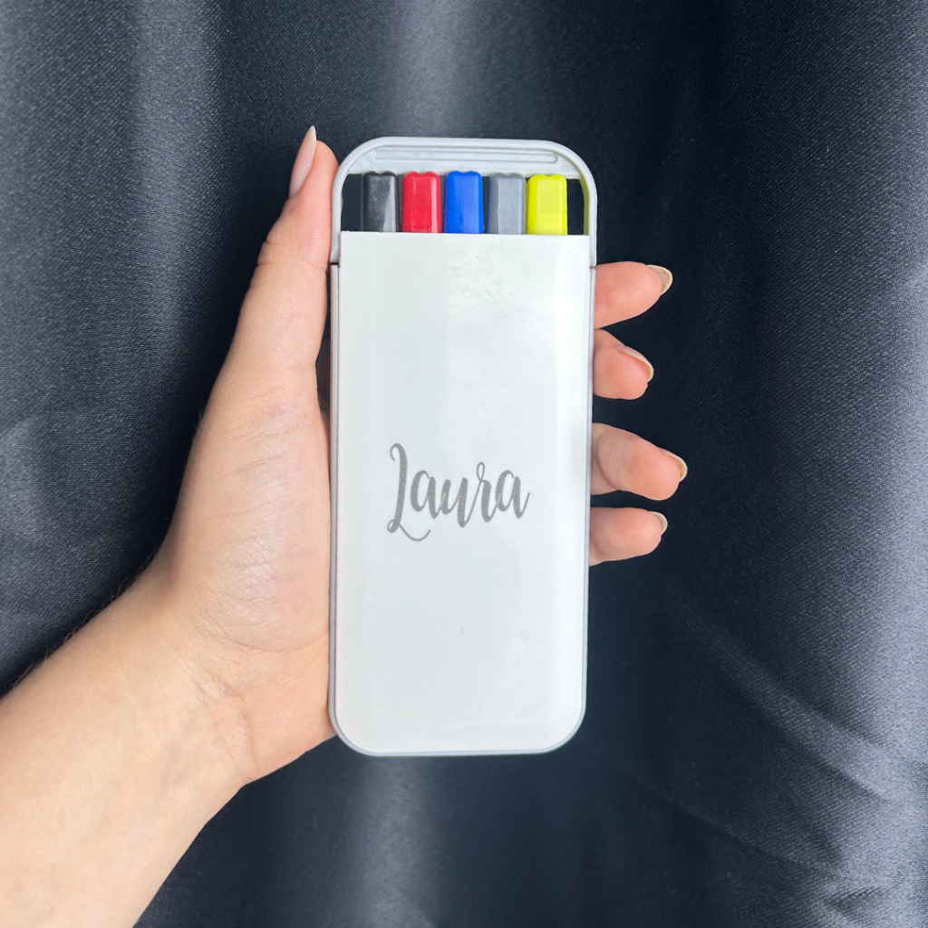 Kit 5 em 1 Caneta Personalizado com Nome Logo ou Frase Lapiseira e Marca Texto Estojo Canetas