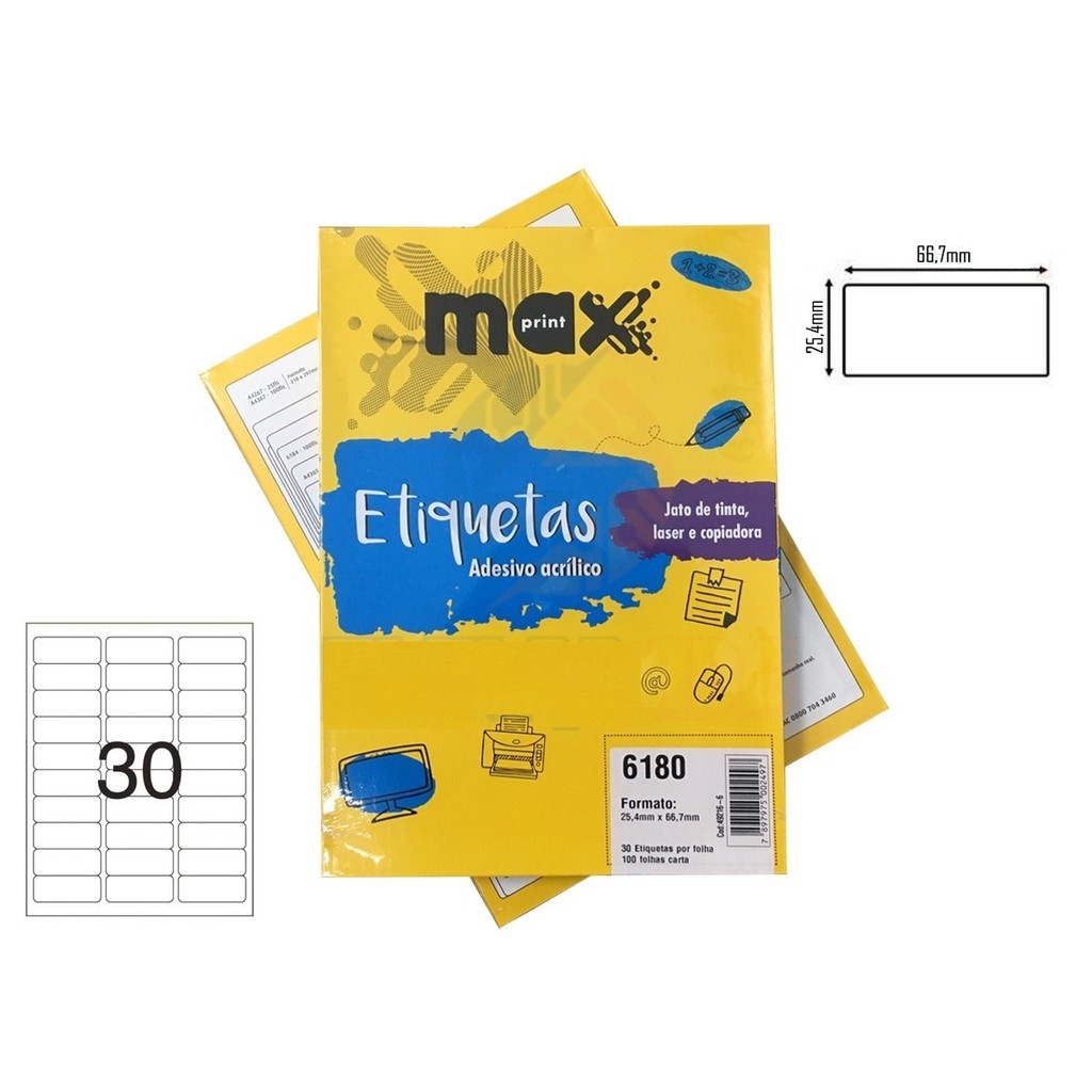 Etiqueta Adesiva Papel Carta 30 Etiquetas por Folha Pacote com 100 Folhas Ref.6180