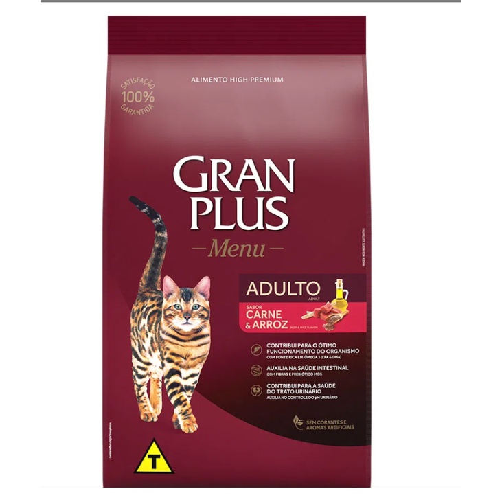 Ração Granplus para Gatos Adultos Sabor carne e Arroz 10,1kg