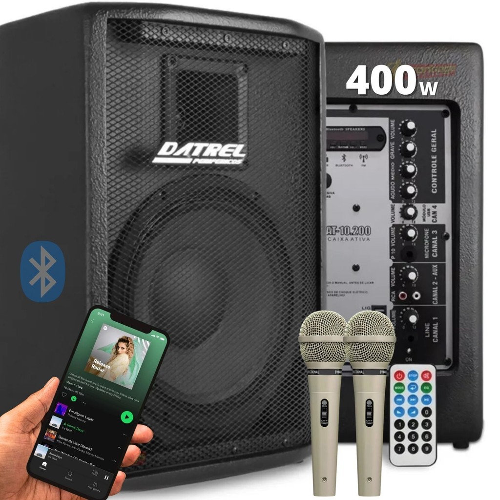 Kit Caixas de Som 400w Rms Ativa Passiva Profissional Datrel Amplificada Acustica Usb + 2 Microfones