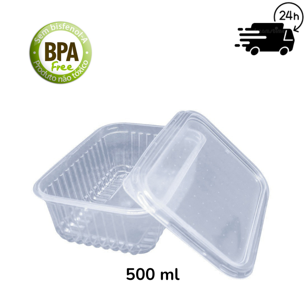 Pote 500 ml retangular Microondas Freezer Marmita Fitness Embalagem Alimento Quente ou Frio - C/48