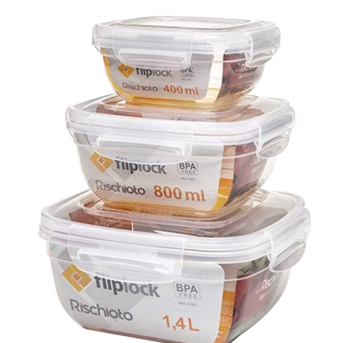 Pote Marmita Fitness Tampa Com Trava Hermético Retangular Ou Quadrado Fliplock Plástico Transparente Rischioto Vários Tamanhos