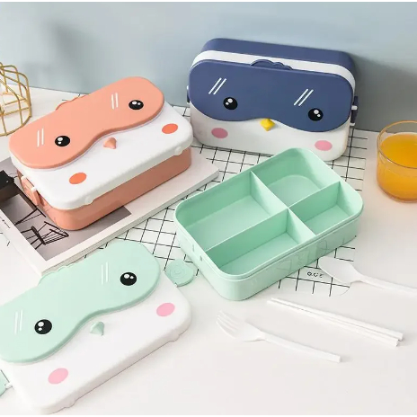 Lancheira Pote Marmita Infantil Divisórias Bento Box 900 Ml Talher e Hashi Microondas Escolar Infantil // Lancheira Bento portátil à prova de vazamento para crianças da escola, retangular, plástico, anime, microondas,