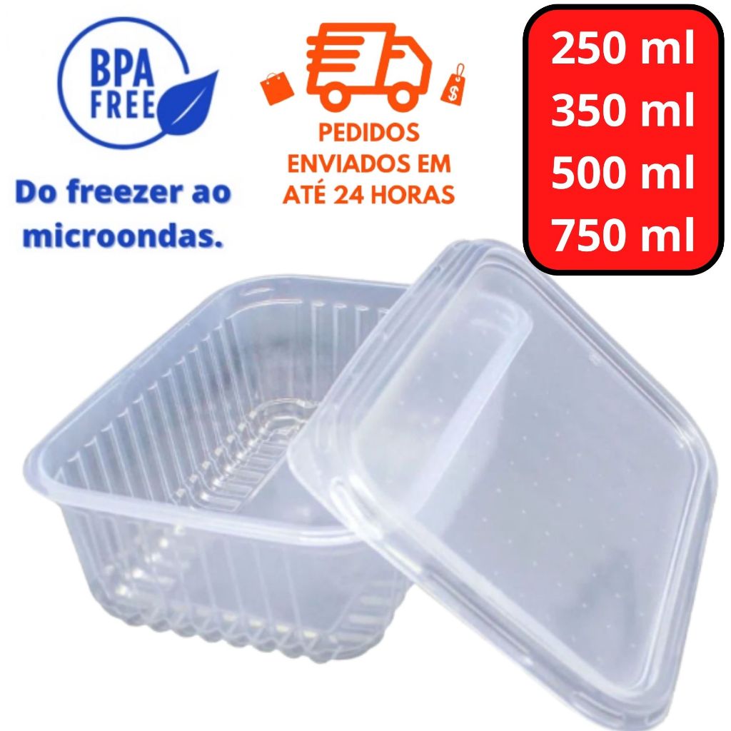 Kit 25 Unid. Pote Plastico Retangular Descartável 500 ml Microondas Freezer Marmita Fit