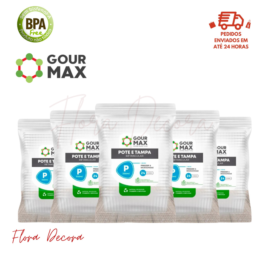 Kit 24 Pote Retangular Plástico Marmita Fit 350 ml Microondas Freezer