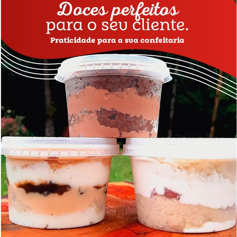 48 potes - KIT Pote descartável com tampa 250ml - REDONDO - para bolo no pote, açaí e entre outros tipos de alimentos.