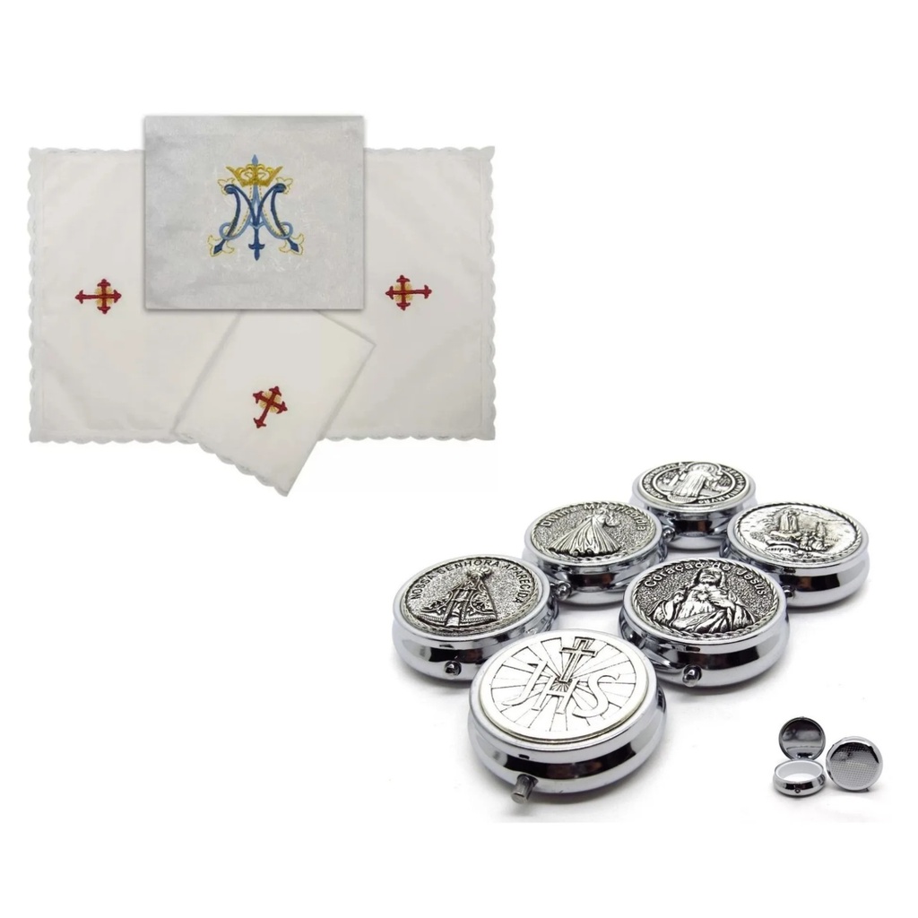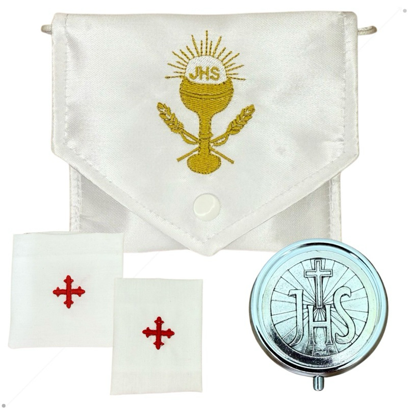 Kit Bolsa Viatico + Teca Porta Hóstia Metal 4,7 X 1,7cm