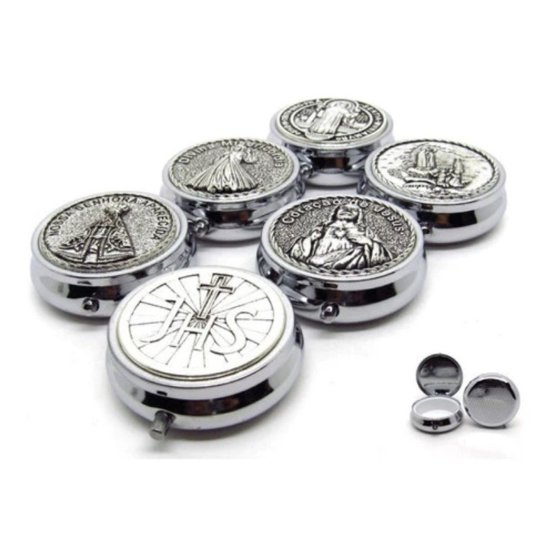 Teca Hóstia Castiçal Religioso Aço Inoxidável Hóstia De Até 5 Cm
