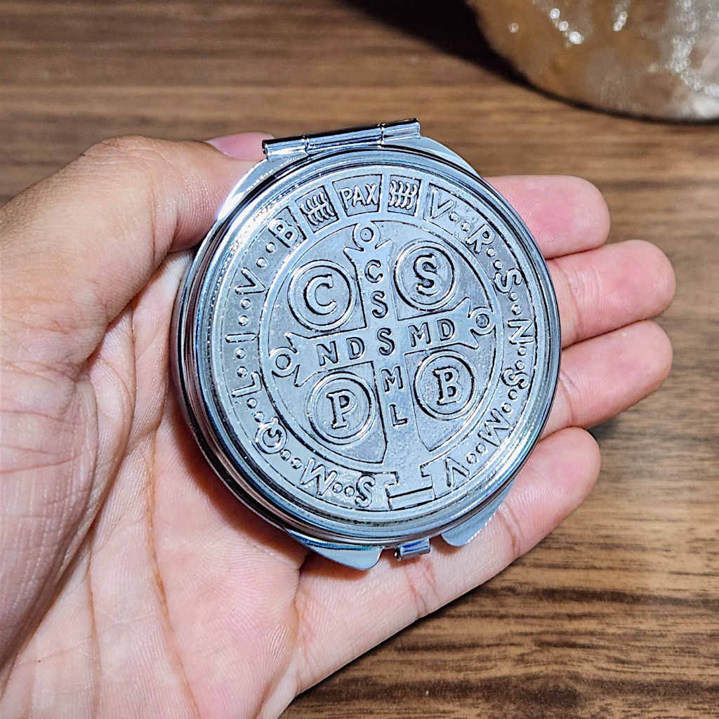 Teca Hóstia Medalha São Bento Religioso Interna 5 Cm Aço Inoxidável