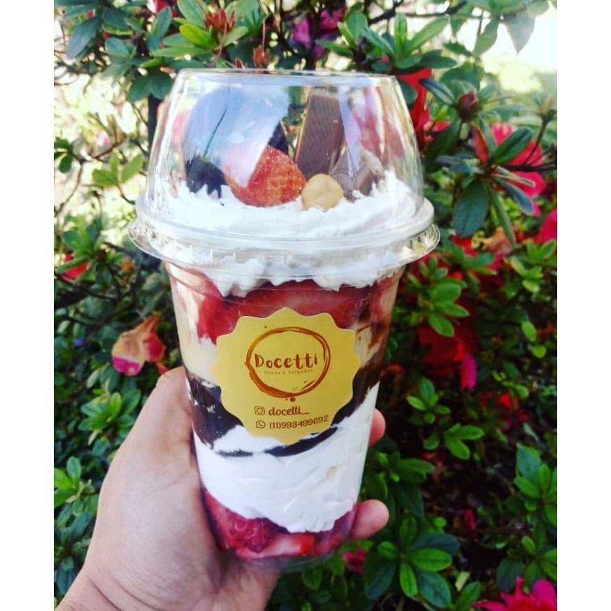 100un Copo Bolha Pp Descartável Transparente 400ml 440ml para Copo da Felicidade - Tampa Sem Furo ideal para Açai, bolo no copo sobremesa