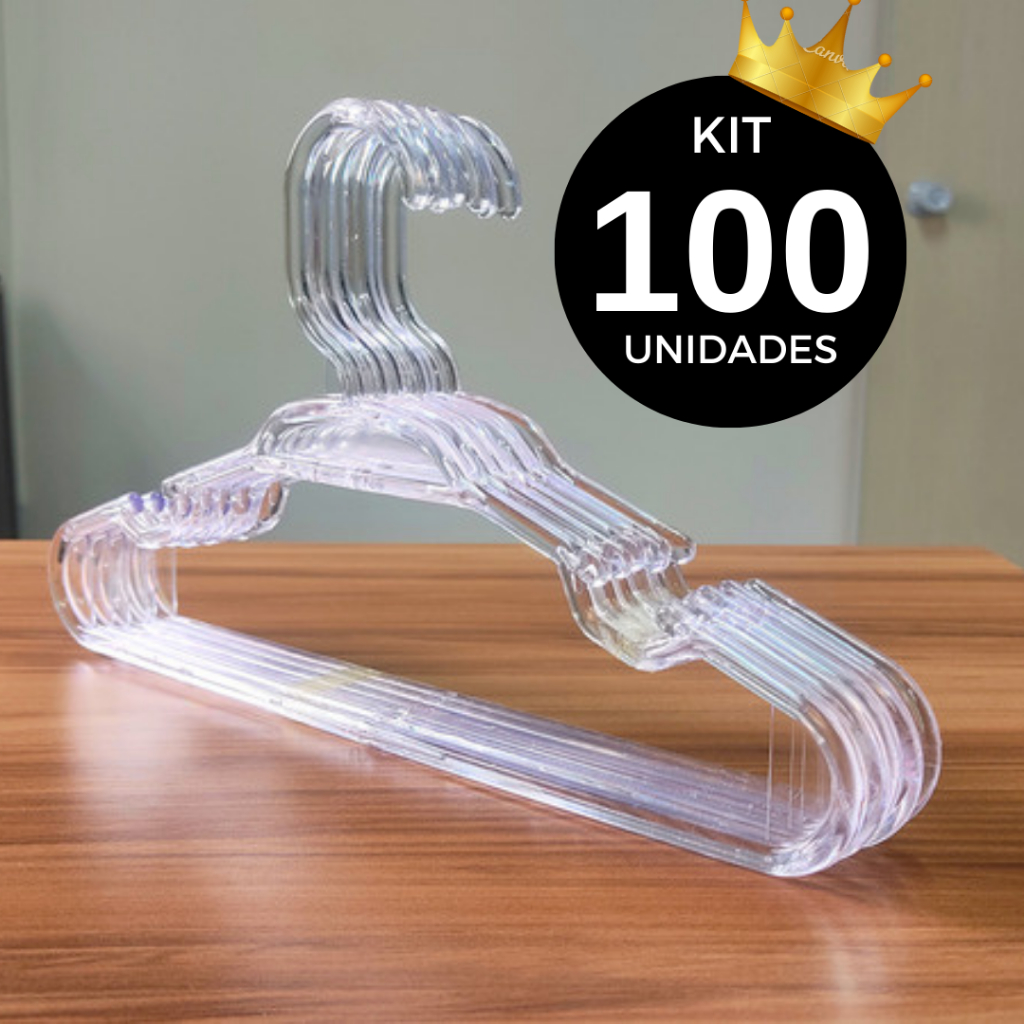 Kit Cabides Infantil de Acrílico Transparente com 100 Unidades Cabide Infantil Bebê Plástico 5,5mm