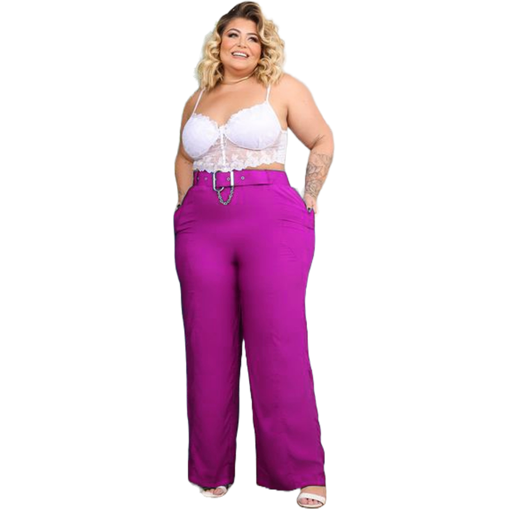 Calça Feminina Plus Size Alfaiataria Pantalona Cinto Social Moda Look Modeladora Tecido Leve Social Casual