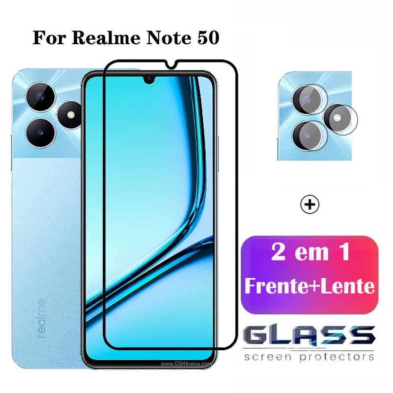 2 Em 1 9D Película De Vidro Realme Note 50 Temperado Pelicula Para Realme 11 11X C55 C53 C51 4G 5G Protetor De Tela De Cobertura Total Filme De E Lente De Câmera