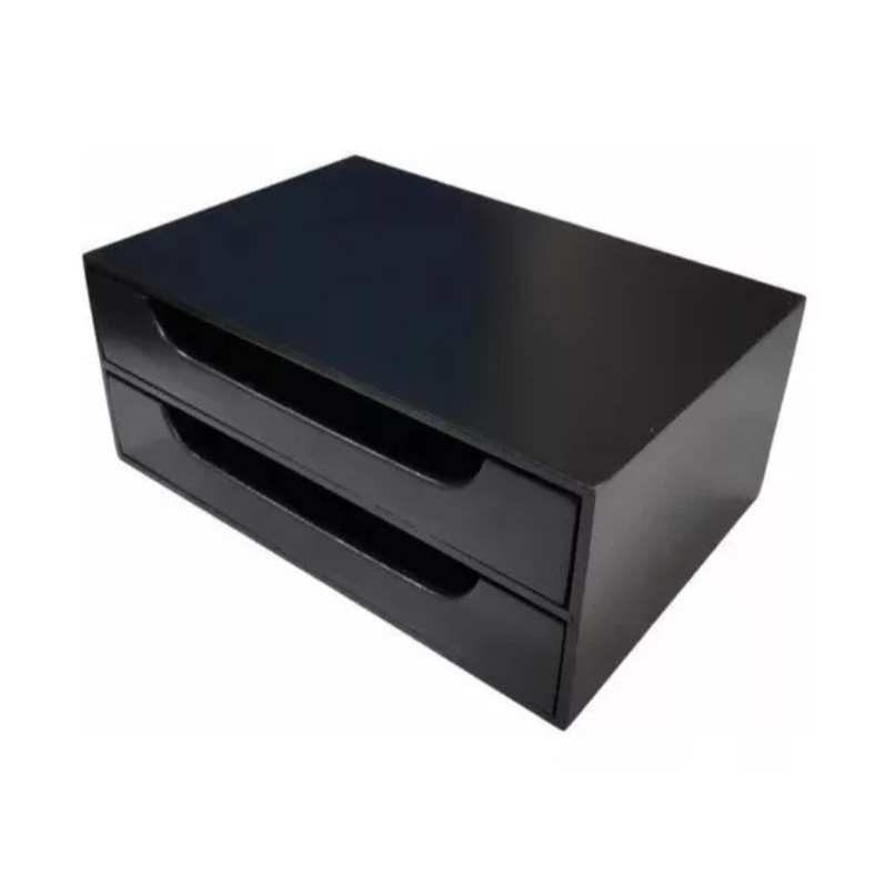 Organizador 2 Gavetas Preto Folha Sulfite A4 e Suporte Base Monitor Gaveteiro para Escritorio