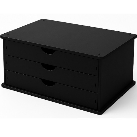 Organizador 3 Gavetas Folha Sulfite A4 e Suporte Base Monitor Gaveteiro para Escritório PRETO