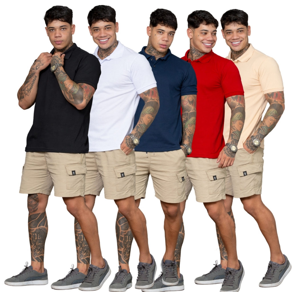 Kit Com 5 Camisas Gola Polo Piquet 100% Poliéster