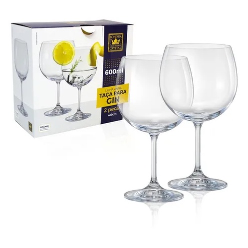 Jogo Conjunto 2 Taças De Gin Cristal Bohemia Royal Resistente 620ML