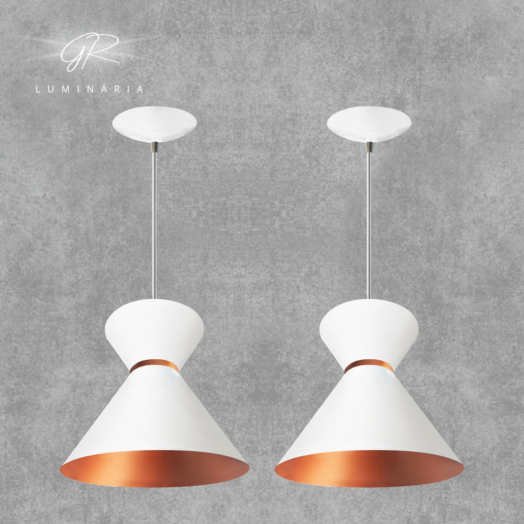 Kit 2 Pendente Lustre Luxo Rainha Branco/Cobre Casa e Decoração ideal para sala de jantar cozinha quarto bancada e balcão
