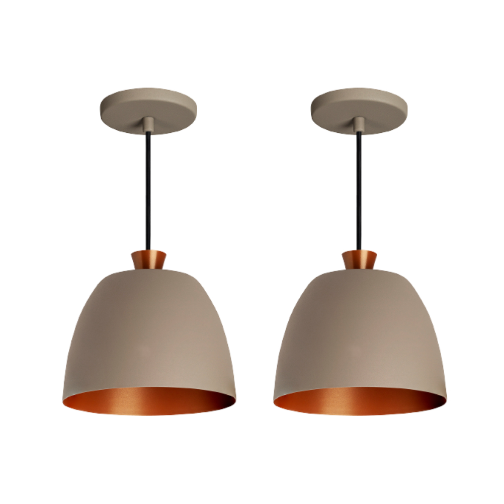 Kit 2 Luminárias Pendente Oval de Teto Mesa Sala Cozinha Jantar Alumínio Dublin Bege Fendi Nude com Cobre Iluminação