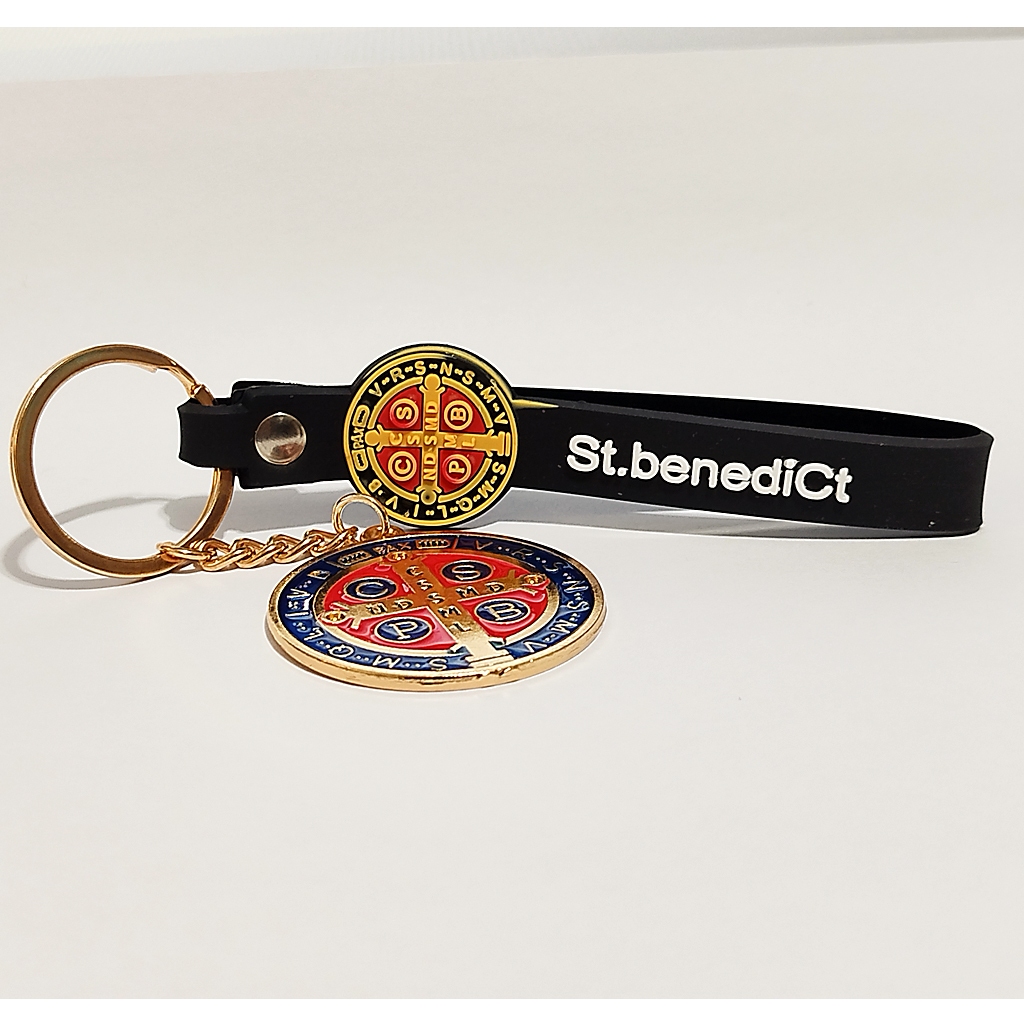 Chaveiro Medalha Escudo São Bento Em Metal Com Cordão Borracha Escudo - Unidade