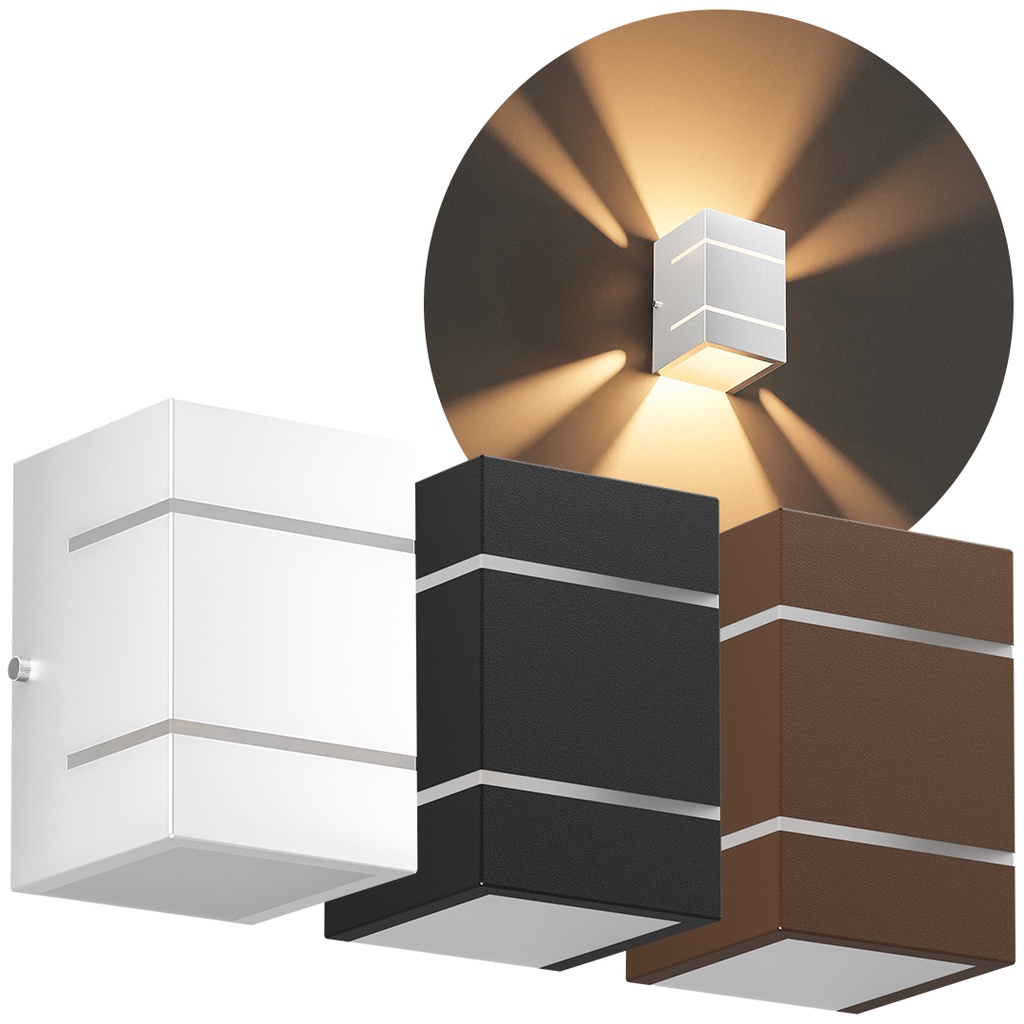 Kit com 6 Arandelas 2 Focos com Frisos e Facho Branca Externa Parede Muro St327