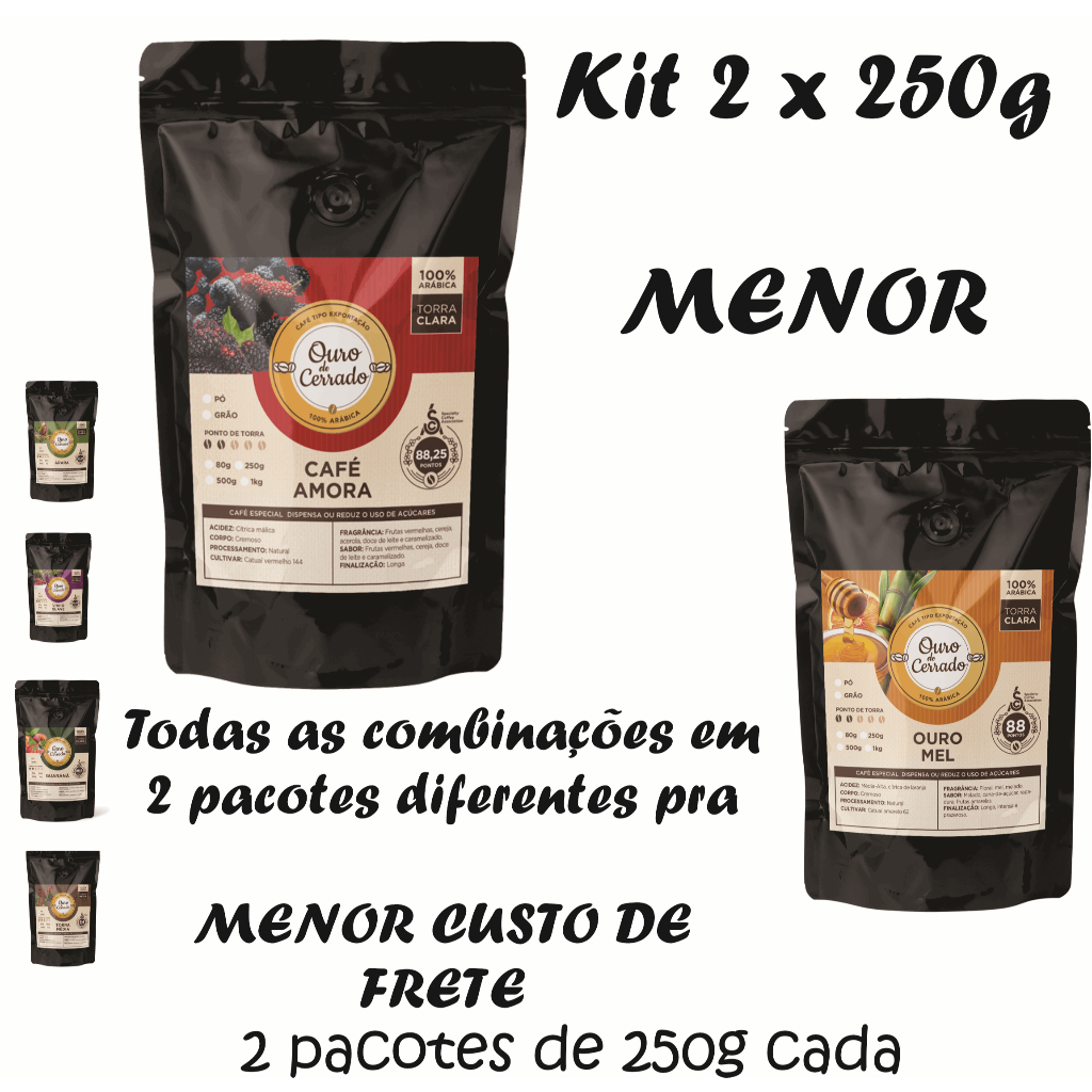 2 pacotes de 250g diferentes de cafés especiais para menor frete kit combo 2x250g