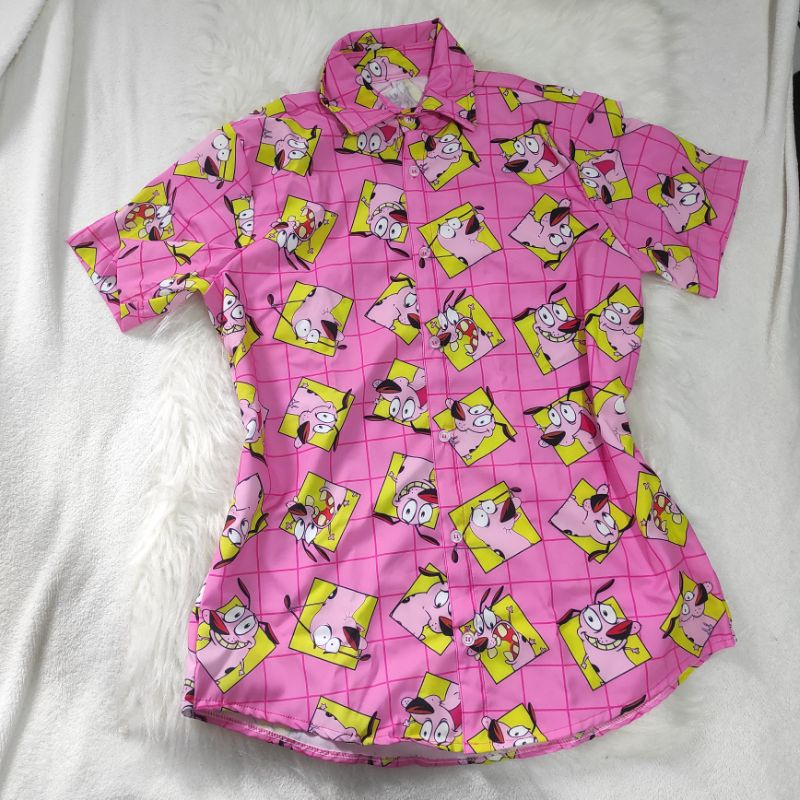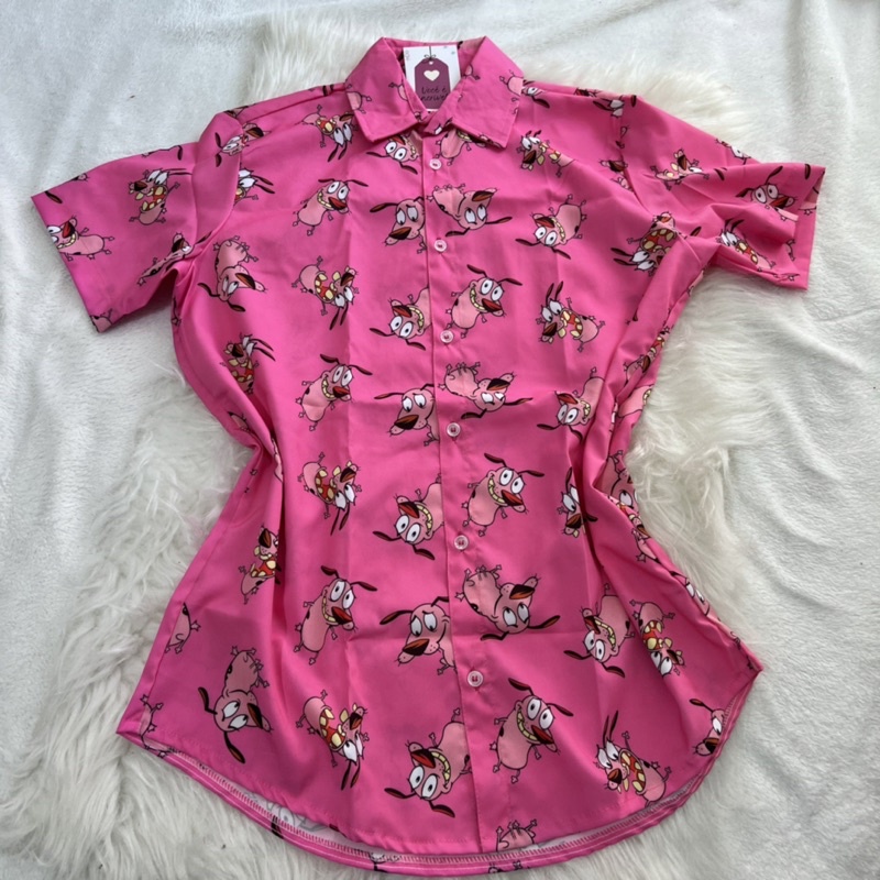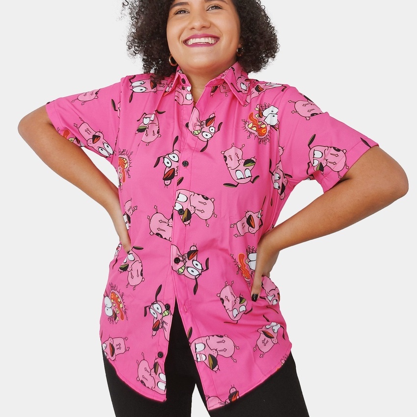 Camisaria camisa botões cora, o cão covarde rosa unissex