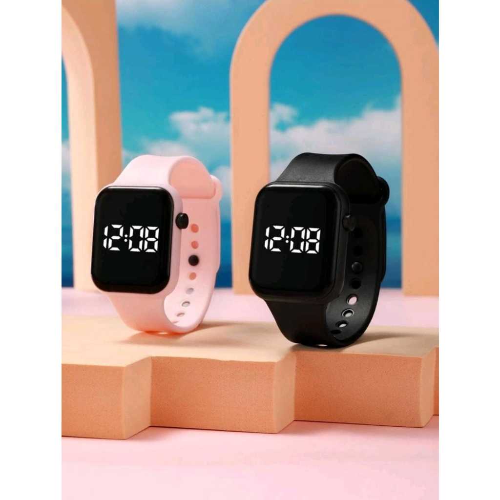 Kit Casal 2 Relógio Digital, Preto e Rosa - Masculino Feminino