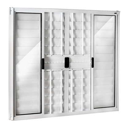 Janela Veneziana de Correr Abertura Central de Alumínio 6 Folhas com grade Ecosul Esquadrisul Alt.:100Cm X Comp.:120Cm Alumínio Branco