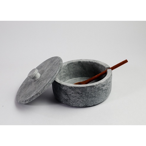 Farinheira em Pedra Sabão São José com Colher de Madeira