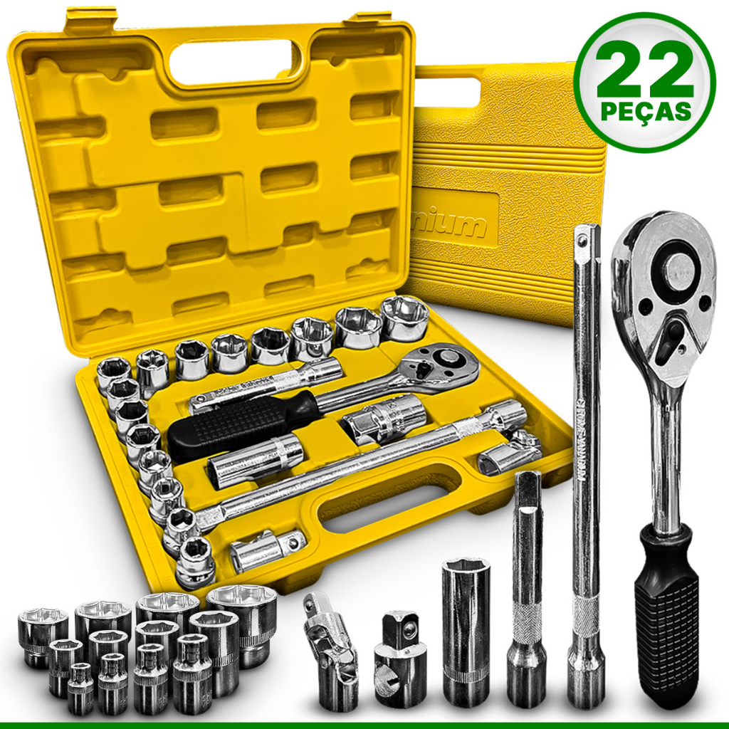 Kit Ferramentas Chave Jogo Soquetes Sextavados 22 Peças Titanium Cromo Vanadium 1/2 Pol 8 A 32mm 22 Pçs Titanium